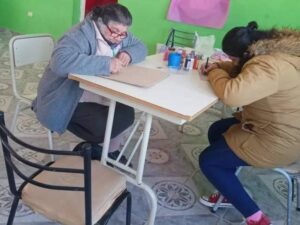 Inicio el taller coordinado por el Área del Adulto Mayor y la Escuela Municipal, a cargo de la profesora Carmen Vega, el cual tiene como objetivo fomentar la creatividad en el adulto mayor y en jóvenes del Departamento, mediante actividades manuales y artísticas .