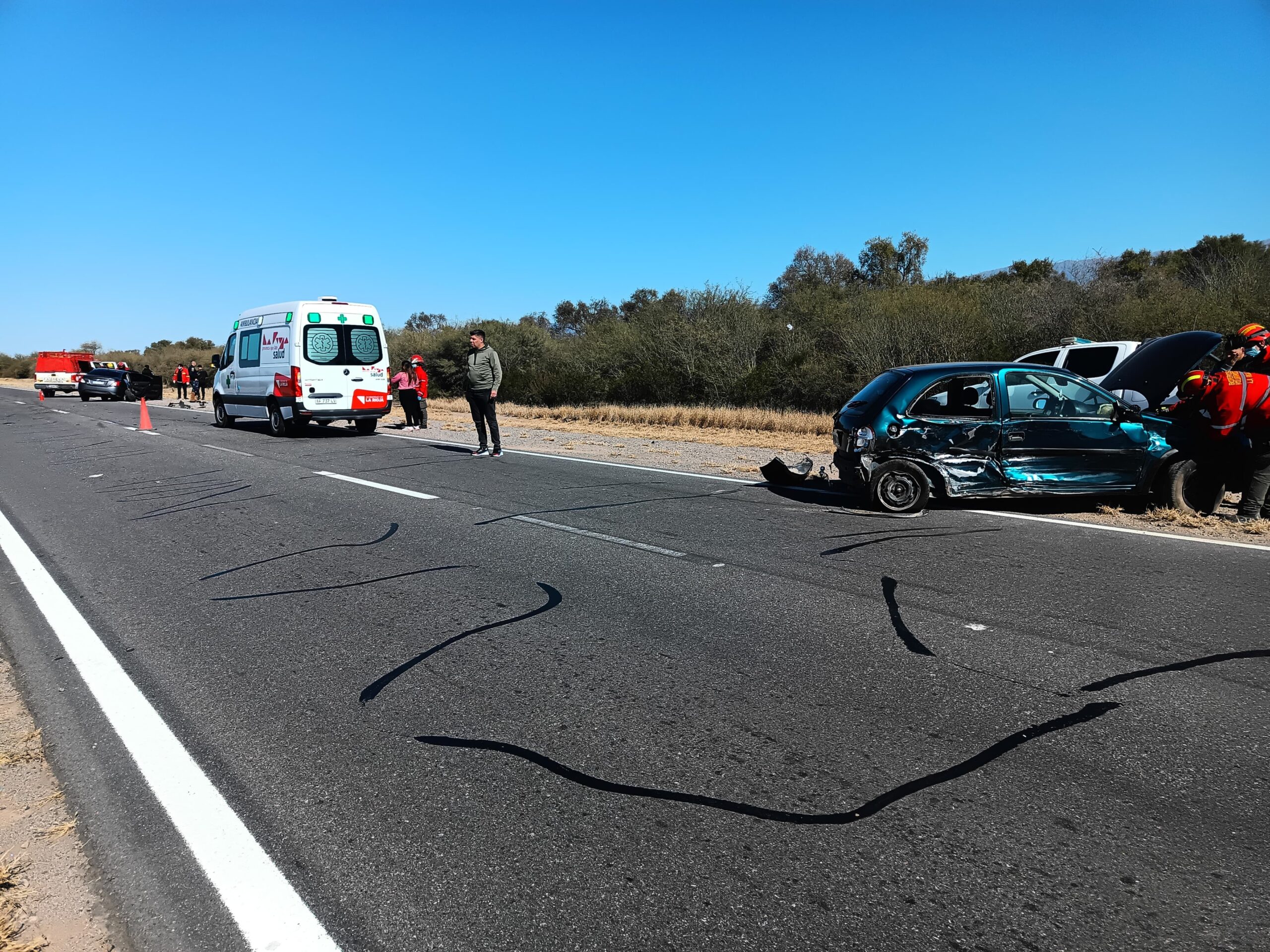 Un fuerte siniestro vial entre dos automóviles se registró al mediodía de este sábado sobre ruta 38, antes de Talamuyuna.