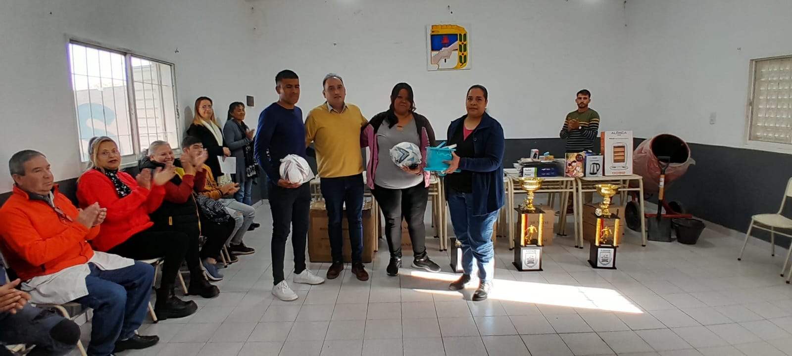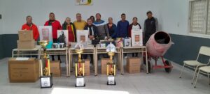 El CLUB DE FUTBOL INFANTIL “LOS PUMITAS, recibió dos pelotas de fútbol y un botiquín de primeros auxilios; y en el caso de la ASOCIACIÓN DE FÚTBOL VETERANOS:, se le hizo entrega de los trofeos para llevar a cabo la final del torneo .
