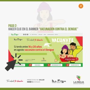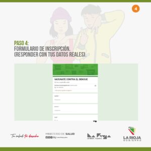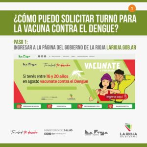 www.larioja.gob.ar/vacuna-dengue/, registrarse completando el formulario para que luego operadores del Ministerio de Salud contacten telefónicamente y les otorguen el turno.