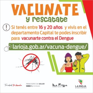 Con fondos propios, el Gobierno de La Rioja adquirió las dosis correspondientes para que chicos y chicas de Capital que tengan entre 16 a 20 años, a partir del 1 de agosto, puedan vacunarse contra el dengue de manera voluntaria y gratuita.