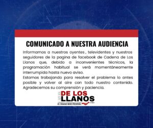 InicioDepartamentalesCOMUNICADO A NUESTRA AUDIENCIA DepartamentalesDestacadas COMUNICADO A NUESTRA AUDIENCIA By cadenadelosllanos 9 abril, 2025 0 17 Cuota FacebookTwitterPinterestWhatsApp Cuota FacebookTwitterPinterestWhatsApp Artículo anteriorCampana: encontraron a niño de dos años deambulando a un kilómetro de su casaArtículo siguientePreocupación en provincias por la baja demanda de reservas para Semana Santa cadenadelosllanos ARTICULOS RELACIONADOS Departamentales ¡Festejo del Día de la Madre: Un Éxito Total! 23 octubre, 2025 Departamentales Maratón Rosa 23 octubre, 2025 Departamentales El Instituto de Servicios Ambientales incorpora equipamiento de última generación y fortalece la capacidad técnica en La Rioja 23 octubre, 2025 DEJA UNA RESPUESTA Cancelar respuesta Comentario: Por favor ingrese su comentario! Nombre:* Por favor ingrese su nombre aquí Correo electrónico:* ¡Has introducido una dirección de correo electrónico incorrecta! Por favor ingrese su dirección de correo electrónico aquí Sitio web: Guardar mi nombre, correo electrónico y sitio web en este navegador la próxima vez que comente. Δ - Publicidad - Mas Leidas ¡Festejo del Día de la Madre: Un Éxito Total! 23 octubre, 2025 Maratón Rosa 23 octubre, 2025 El Instituto de Servicios Ambientales incorpora equipamiento de última generación y fortalece la capacidad técnica en La Rioja 23 octubre, 2025 Alerta por la venta de Carrefour: Máxima preocupación por los puestos de trabajo 22 octubre, 2025 Cargar más Ultimos comentarios Sr WordPress en ¡Hola mundo!