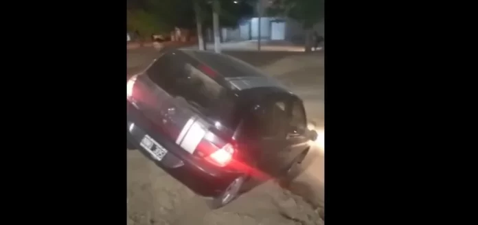 Un horas de la noche del jueves, el conductor de un automóvil terminó dentro de una alcantarilla tras un incidente vial ocurrido este jueves en avenida Félix de la Colina, justo frente a la cancha de los Veteranos.