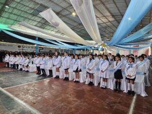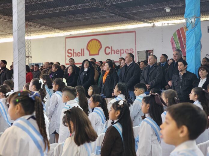 El Polideportivo Sadi Saddi (Club River de Chepes), fue testigo del momento de promesa de lealtad a la bandera por parte de los alumnos de 4to grado del departamento, que se realizó de manera simultánea en toda la provincia.