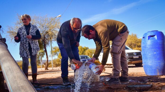 Autoridades provinciales y departamentales realizaron una visita de trabajo a la localidad de Ñoqueve, en el departamento Rosario Vera Peñaloza, donde iniciarán la construcción de un acueducto de 4.500 metros de extensión para conducir el agua desde una perforación y mejorar inconvenientes de presión que se dan en esta zona.
