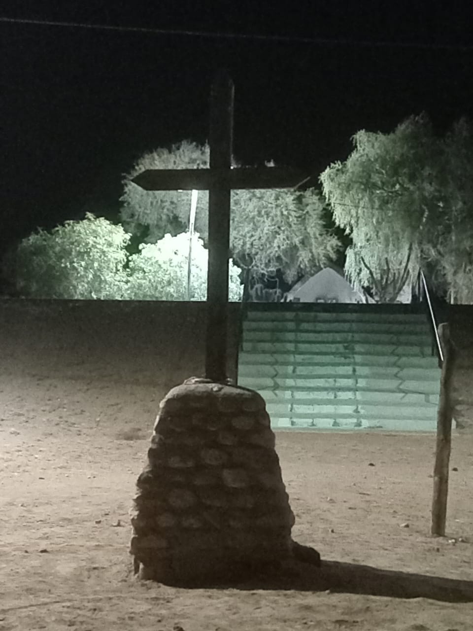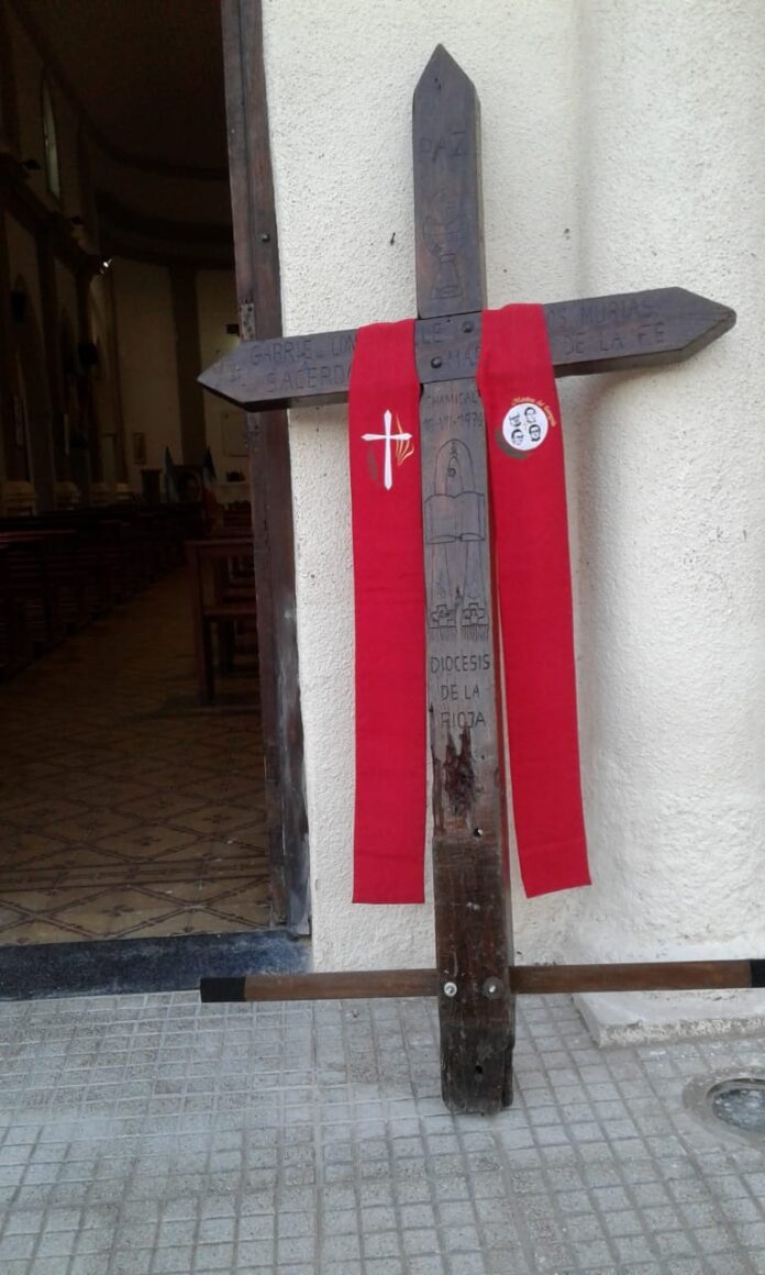 En el año 2.018, posterior a los Juicios por los dos crímenes, el Papa Francisco anuncia la pronta Beatificación de los cuatro “Mártires Riojanos”, lo cual exige el traslado de los cuerpos de Carlos y Gabriel desde el Cementerio Municipal de Chamical al Templo “El Salvador”; donde se construye un oratorio en su memoria y donde es colocada finalmente, junto a Ellos, esta hermosa Cruz, que resistió los ataques del odio y nos dio fuerzas desde el amor….. para seguir andando nomás.-