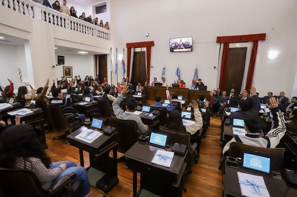 La Sesión, en primera instancia, fue presidida por la vicegobernadora Teresita Madera, el ministro de Educación Ariel Martínez y el Secretario de juventudes José Delgado. Seguidamente, se realizó el intercambio de las bancas entre los diputados provinciales y parlamentarios, luego se realizó el izamiento de las banderas por los parlamentarios Felipe Llanos, Brisa Páez y Zahira Romero.