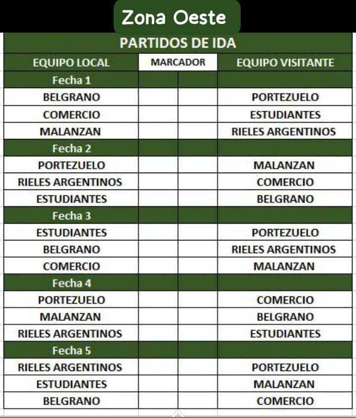 Zona Oeste integrada por 6 equipos. Portezuelo, Malanzan, Belgrano,