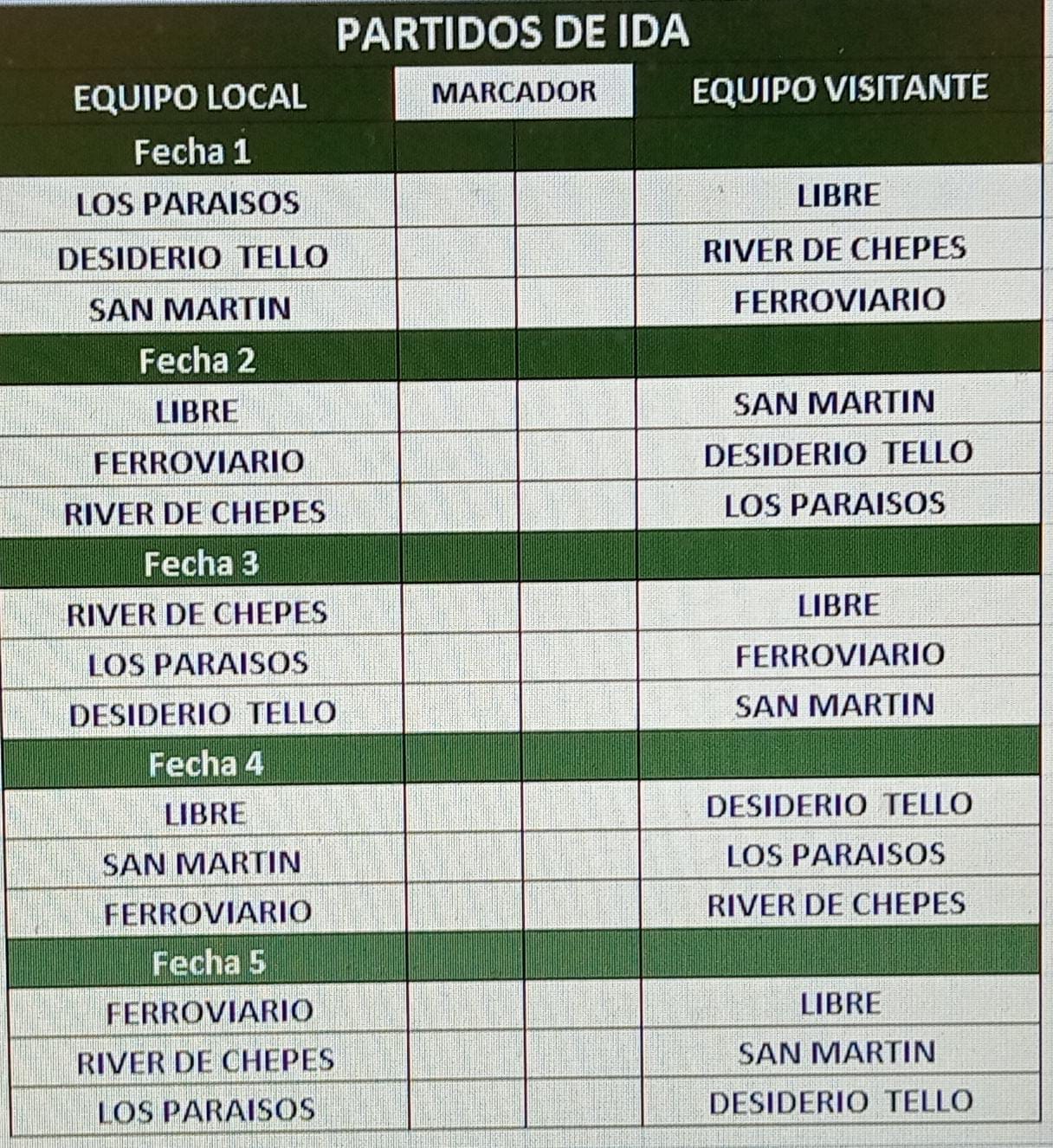 Libre : Los Paraisos de esta zona tendra 1 equipo quedara eliminado del torneo clasificando los otros cuatro equipos a la siguiente fase.
