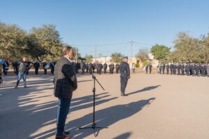 Asimismo, sostuvo que “la Patria somos todos y, en ese sentido, consideramos que los alumnos han alcanzado la madurez para saber a qué se comprometen en este acto, que no es otra cosa que comprometerse con sus padres, sus hijos, sus familias, con la sociedad toda. Y esa madurez conlleva una enorme responsabilidad, estar al servicio del otro y eso es lo que nos va a guiar a lo largo de esta carrera y esto les va a dar el empuje final para poder alcanzar sus objetivos, que están prontos a realizarse, tanto para los técnicos superiores en su tercer año de la formación en seguridad y seguridad penitenciaria, como a los agentes de seguridad y seguridad penitenciaria”.