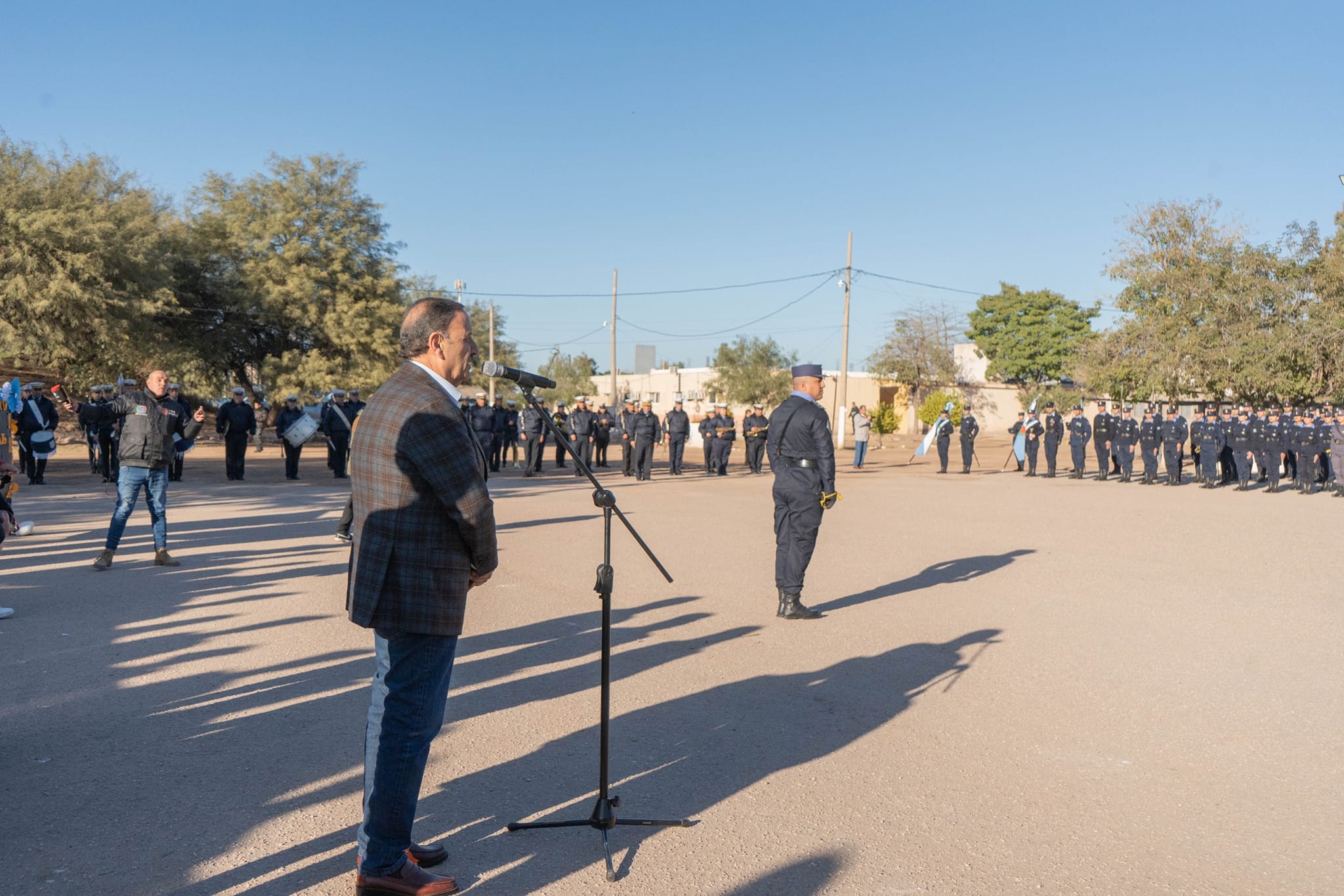 En primer término, el gobernador Ricardo Quintela expresó que “nuestro acompañamiento honra la relevancia que tiene la jura de la Bandera, el compromiso que hacen ante los ciudadanos y el compromiso ante la Insignia Patria de cumplir con sus responsabilidades, que son hacer cumplir la ley, proteger la vida y la libertad de los habitantes de esta provincia” y remarcó que “esta es una decisión de vida, la jura a la bandera es ratificar públicamente su compromiso con la sociedad y su convicción de defender los valores que ella representa”.