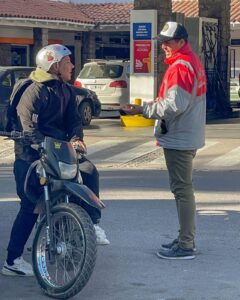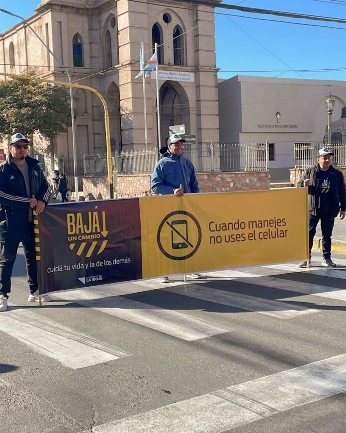 En el marco de la campaña “Bajá un Cambio”, el Gobierno de La Rioja, a través de la Subsecretaría de Seguridad Vial, viene realizando distintos tipos de intervenciones en las esquinas de semáforos y lugares de mucha circulación, para concientizar sobre la importancia de respetar las normas de tránsito y las medidas de seguridad con el objetivo de reducir los siniestros viales y priorizar el respeto por la vida.