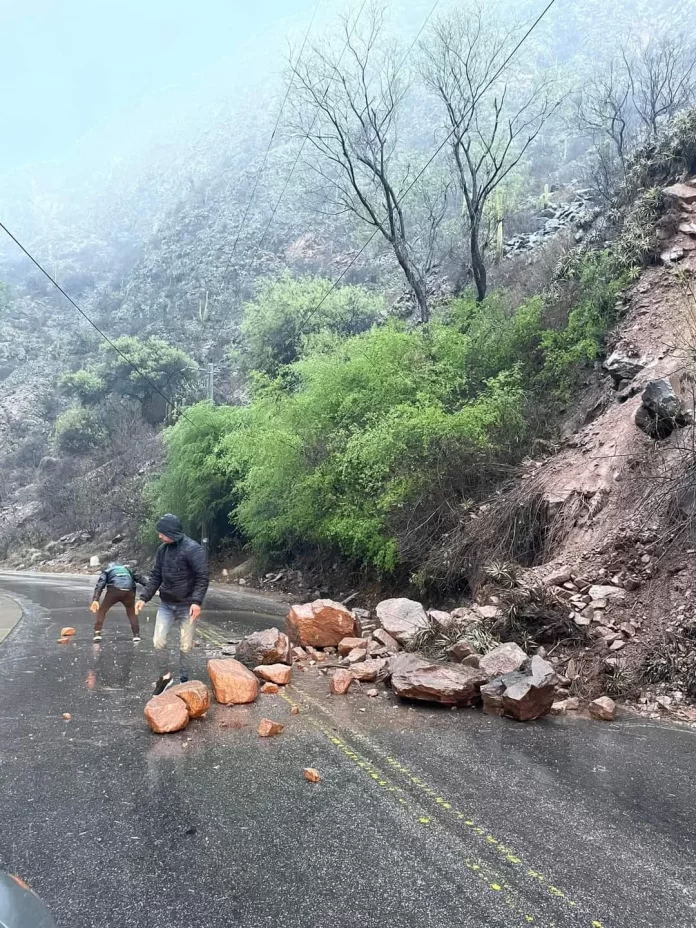 En el camino a Sanagasta, la lluvia provocó el desprendimiento de piedras sobre la Ruta, por lo que piden circular con precaución.