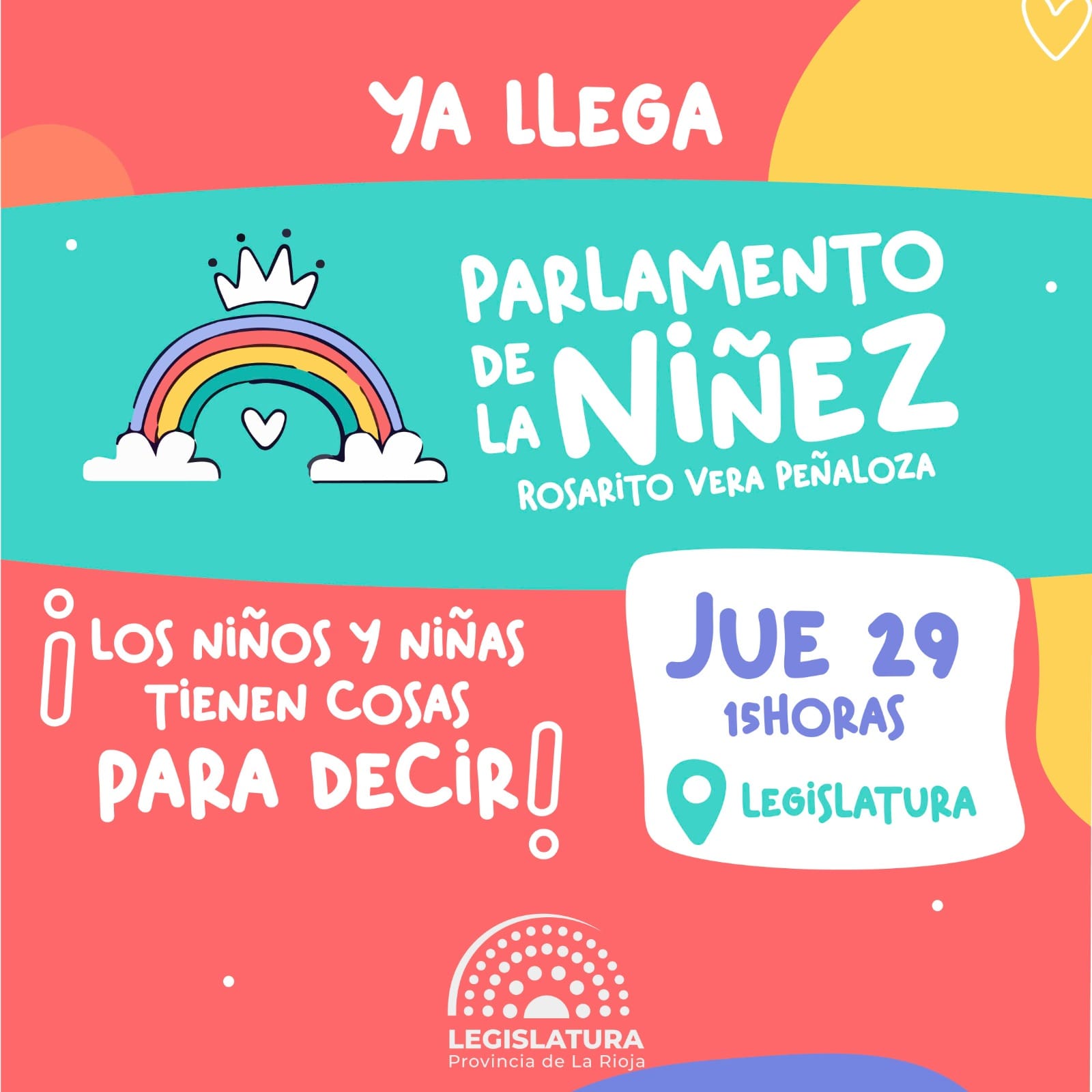 Por primera vez en la Legislatura se realizará el Parlamento de la Niñez. En el marco de la ley 10.544 se llevará a cabo el encuentro, que tiene por finalidad la promoción de los derechos de niñas, niños y adolescentes. Se debatirán temáticas relacionadas a la niñez y adolescencia de la provincia, propiciando la participación activa.