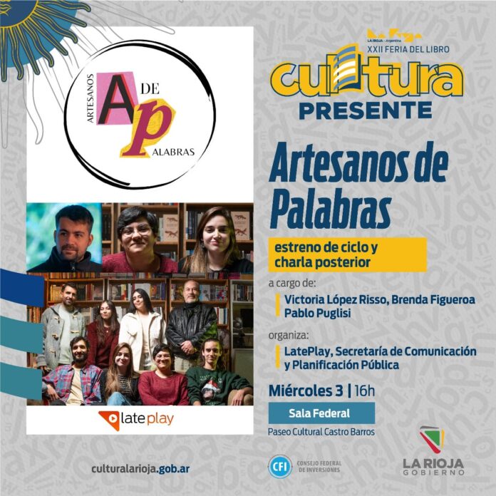 LatePlay es la plataforma de contenidos audiovisuales de la provincia que forma parte de nuestros medios públicos y en esta edición de la Feria del Libro presentará el trailer de “Artesanos de Palabras”, unas microproducciones audiovisuales donde quienes forman parte de este proyecto, cuentan quienes son las y los artesanos de palabras.